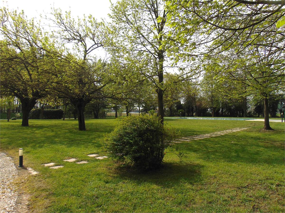 La soluzione che condivide l'accesso dal parco con un altro trilocale si compone di un ingresso, una sala da pranzo con angolo cottura, una camera matrimoniale con guardaroba a muro e un bagno finestrato con vasca/doccia. La sapiente ristrutturazione conservativa, la travatura a vista, la pavimentazione diffusa in parquet, gli ambienti climatizzati, il posto auto assegnato, la disponibilità della piscina e della sauna esterna, il forfait delle spese comuni e delle utenze oltre agli ultimi ulteriori lavori di efficientamento energetico fra cui il ricorso all’impianto fotovoltaico con conseguente sostituzione della caldaia a servizio rendono questa offerta impareggiabile nel suo genere.